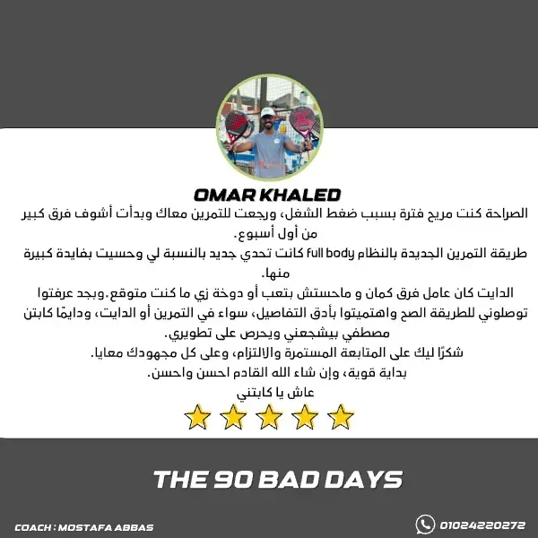 You’ll get access to our custom app, where every workout is explained step by step in Arabic with easy-to-follow videos. Plus, we check your performance daily and give feedback to make sure you’re doing it right.